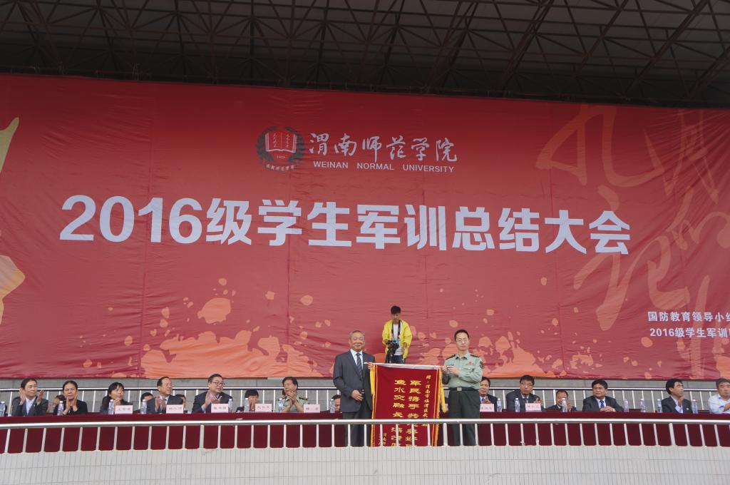 9月26日上午,学校在田径运动场举行2016级新生军训工作总结大会。参加大会的有渭南市临渭区武装部部长吕拥军,2016级军训团团长杨宏,威尼斯党委书记张金安,党委副书记赵伏友,纪委书记任健,副院长程书强,副院长李海龙,校党委委员杨小渭,校长助理韩小卫,校学术委员会主任王菊霞。另外,在主席台就座的还有学校国防教育工作领导小组成员单位负责人、各二级学院党总支书记、院长。大会由党委副书记赵伏友主持。