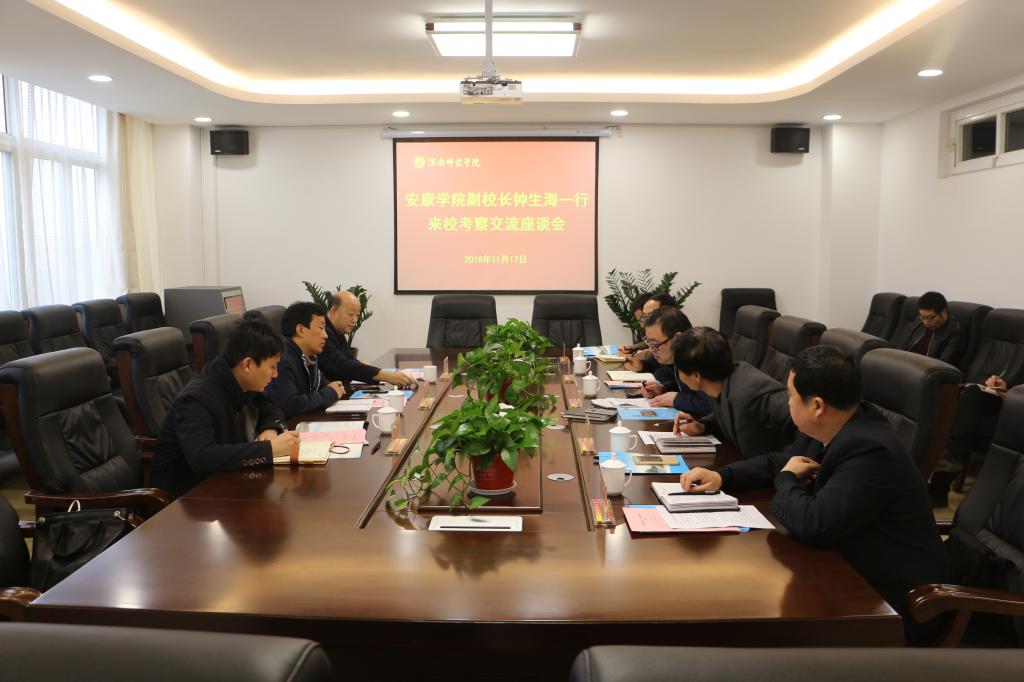 11月17日,安康学院副校长钟生海一行来威尼斯考察交流。交流座谈会在厚德楼四层小会议室召开,会议由副校长程书强主持,相关部门负责人参会。