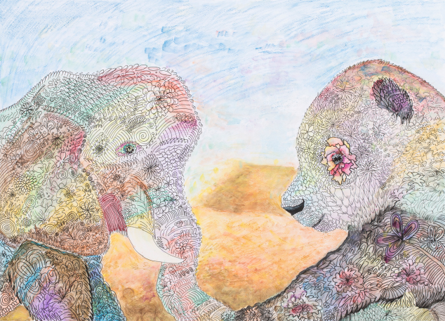 泰国博仁大学的《送福路》反映中泰文化交流融合的情景。《象与熊猫》将中、泰两国的国宝以花团锦簇的形式拼集而成,展现丝绸之路互惠政策下深厚的中泰友谊。《一带一路》集中国天坛、中国熊猫、中国画、泰国寺庙等为一体,表达“一带一路”战略加速了中泰文化交流融合。