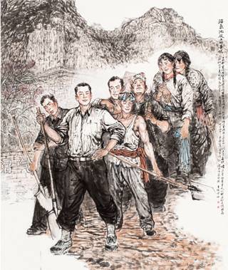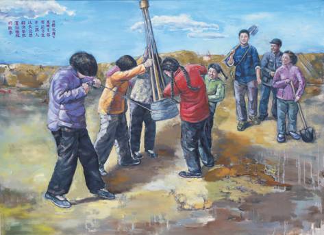 大秦岭画派青年画家尉艳丽、张鸽舞、牛二春的作品《修水坝》,表现就是知青书记习近平带领村民修水坝的情景,反映了支部书记习近平带领一班人从长设想解决旱地灌溉难题的事情。