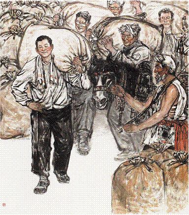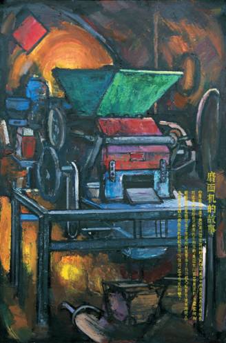 大秦岭画派青年画家刘武安的作品《磨面机的故事》画面上的磨面机,正是知青习近平用上级奖给自己的奖品给村民换来的,是梁家河村第一台磨面机,为梁家河和周围村庄群众磨面带来了方便,也给村里带来了经济收入。这件事在当时传为佳话,迄今为民称赞。