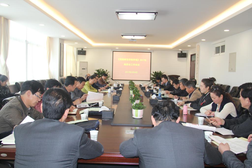 在入选教育部名栏,多次获得“全国高校优秀社科期刊”、“陕西省高校优秀社科期刊”之后,学报2016年首次获得“陕西省高校名刊”称号,跻身陕西高校学报第一梯队,首次进入全国高校文科学报理事单位,再次入选武汉大学“RCCSE中国核心学术期刊”。会上,报刊社总编辑高敏芳作了题为《以核心指标体系为办刊指针,追赶超越服务优秀文化传播》的工作汇报。学校领导赵伏友、程书强、李海龙、权雅宁以及学报编委会副主任王炳社、党政办副主任曹强先后发言,他们肯定了学报取得的成绩,对学报发展提出了意见和建议。