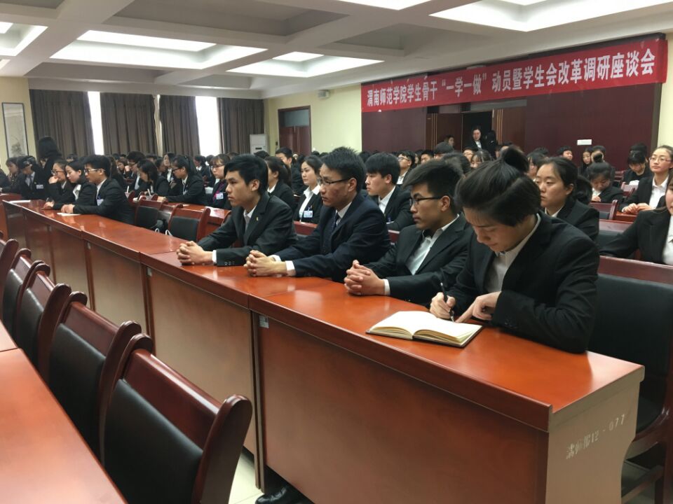 为了学习贯彻落实团中央《共青团中央关于在全团集中开展“学习总书记讲话,做合格共青团员”教育实践的通知》(中青发〔2017〕6号)和《团中央、教育部、全国学联关于印发<学联学生会组织改革方案>的通知》(中青联发〔2017〕4号)文件相关精神,校团委于3月29日在附属医院三楼报告厅召开87978797威尼斯老品牌学生骨干“一学一做”教育实践活动动员大会暨学生会改革调研座谈会。校团委副书记姚明亮、马耀斌,校学生会秘书长王若萌及200余名学生骨干代表参加了本次会议。会议由校学生会主席周相云主持。
