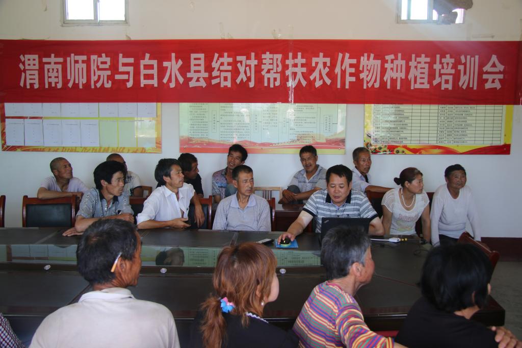 为深入贯彻落实全省普通高等学校结对帮扶贫困县工作会议精神,扎实做好结对帮扶白水县脱贫攻坚工作。6月22日,学校继续教育学院院长、扶贫培训学院副院长史天胜带领学校结对帮扶团队深入白水县尧禾镇太香村开展电子商务及农作物种植特色产业帮扶培训活动。