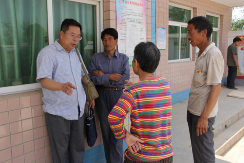 继续教育学院院长、扶贫培训学院副院长史天胜为贫困户解疑