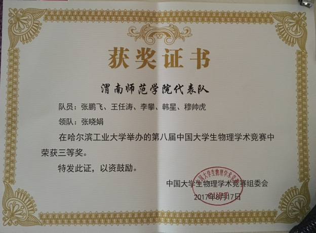 8月13日至17日,第八届中国大学生物理学术竞赛(简称CUPT)在哈尔滨工业大学如期举行,来自南开大学、清华大学、浙江大学、南京大学、复旦大学、西安交通大学等73所高校的74支代表队参加了本次竞赛,另有26所高校派队观摩了此次比赛。威尼斯今年首次组队参赛,经过几轮校内赛和陕西省省赛,最终选拔出1个参赛队参加此次比赛,在经验不足、仪器有限等情况下,师生克服种种困难,经过与西南交通大学、哈尔滨工业大学、华中科技大学、渤海大学、北华航天工业大学、华东师范大学等高校经历5轮共20场的激烈辩论,最终荣获全国“三等奖”。