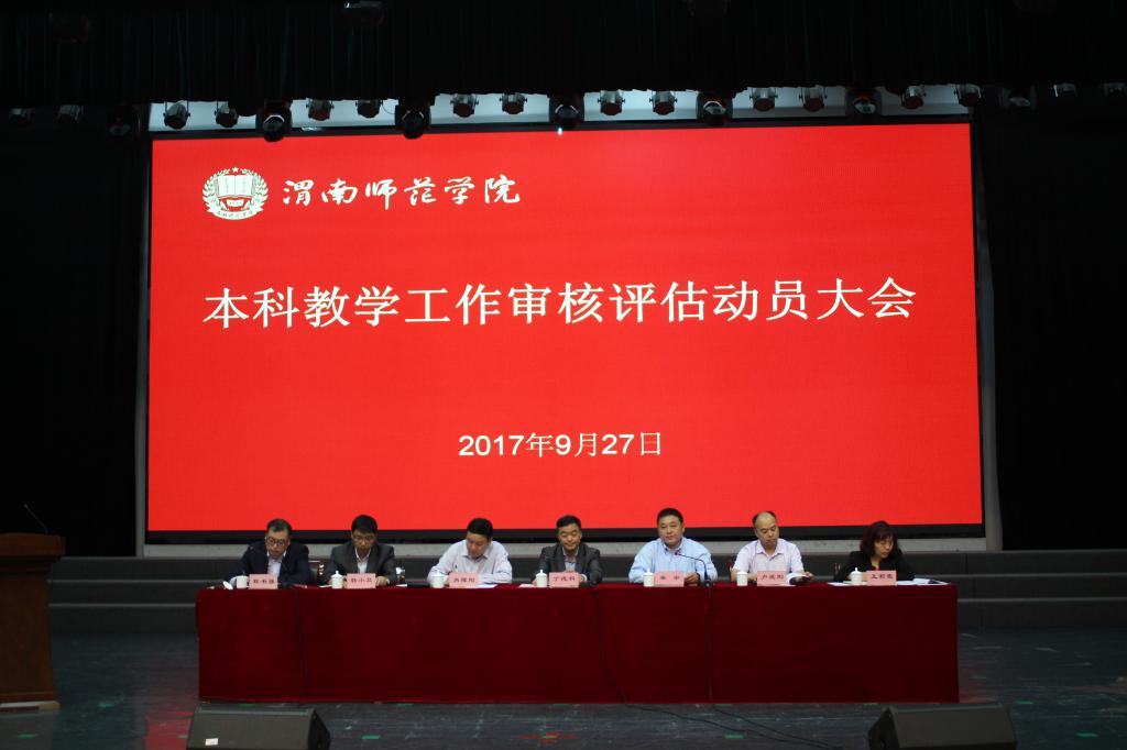 9月27日下午,学校在演艺厅召开本科教学工作审核评估动员大会,党委书记丁德科,院长卓宇,纪委书记肖耀刚,副院长程书强、卢爱刚,院长助理韩小卫,学术委员会主任委员、教务处处长王菊霞及学校科级以上干部200余人参加会议,会议由副院长程书强主持。