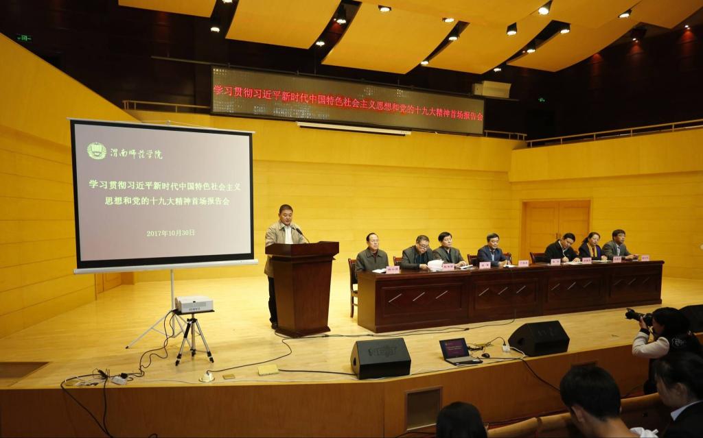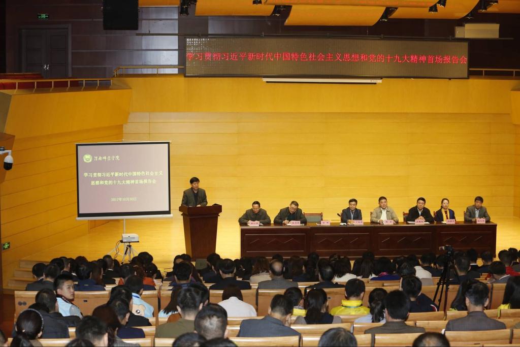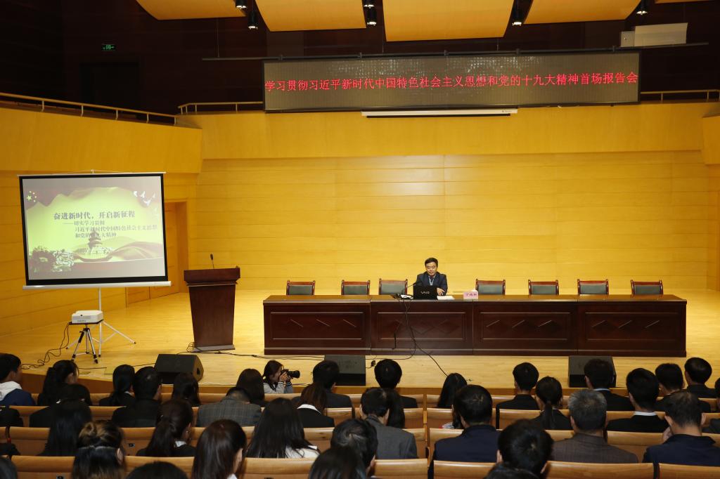 10月30日下午,87978797威尼斯老品牌学习贯彻习近平新时代中国特色社会主义思想和党的十九大精神首场报告会在逸夫楼华金音乐厅举行。报告会由院长卓宇主持。