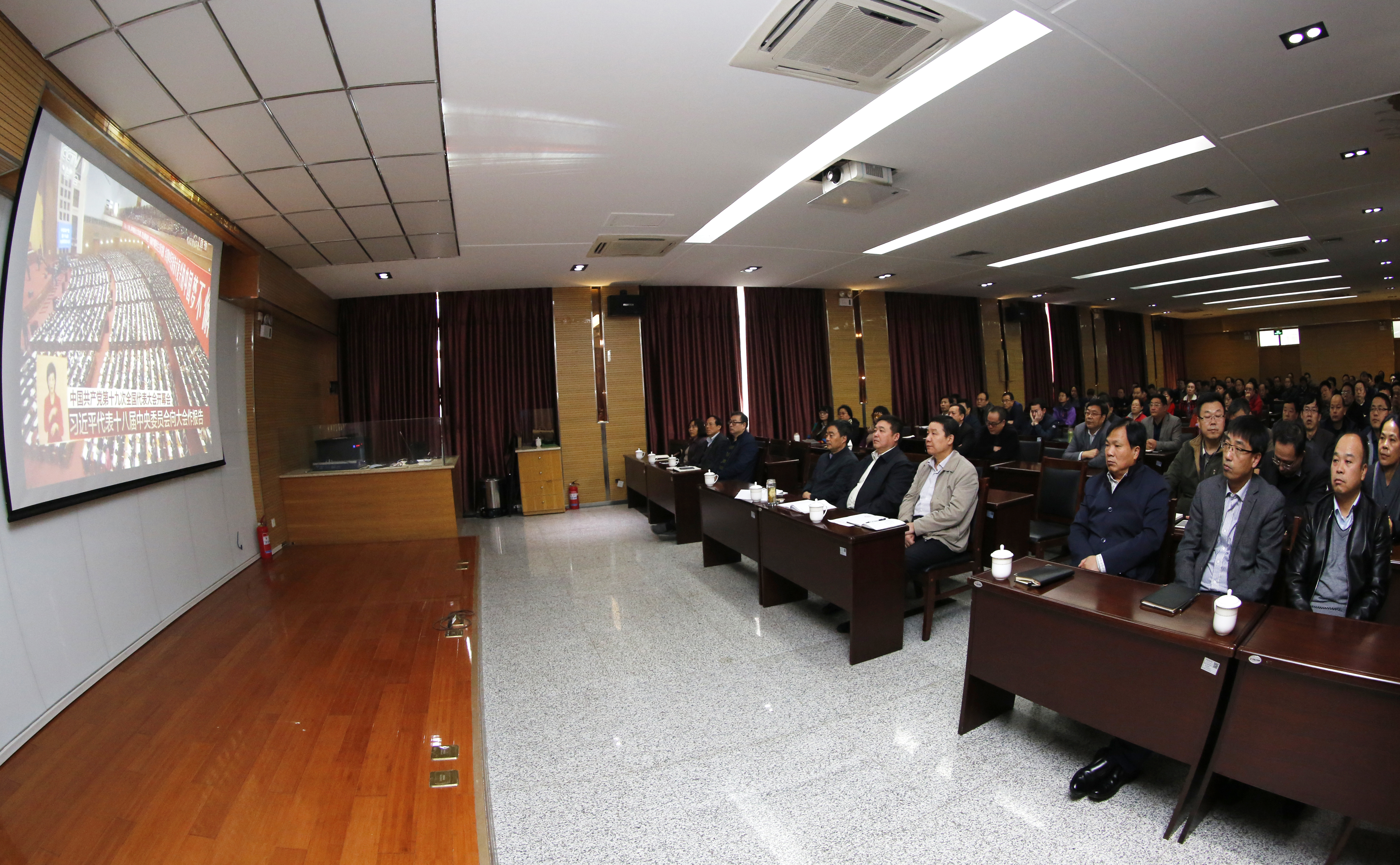为迎接党的十九大胜利召开,认真贯彻落实陕西省委高教工委、渭南市委工作安排,学校组织校领导、副处级以上干部于10月18日上午9:00在逸夫楼科学大讲堂收听收看党的十九大召开盛况,各二级学院组织本学院师生、团委组织青年团干、离退总支组织离退休职工集体收看党的十九大开幕式。学校还在学生餐厅、LED大屏幕等处直播党的十九大开幕式盛况。