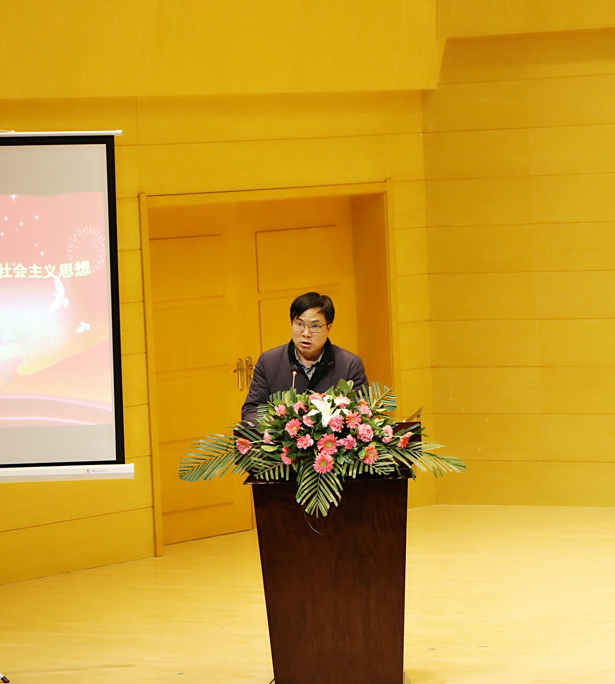 2018年1月3日下午,威尼斯“大学生学习党的十九大精神和习近平新时代中国特色社会主义思想研讨会”在华金音乐厅隆重召开。学校党委书记丁德科、党委副书记任健、党委委员、副院长李海龙出席会议,学校宣传部、学工部、人武部、团委等部门负责人,各二级学院分党委、党总支书记、副书记、学工办主任、学生党支部书记、专兼职辅导员,以及学生干部、学生党员、入党积极分子代表共500余人参加大会。会议由学工部部长王俊安主持。