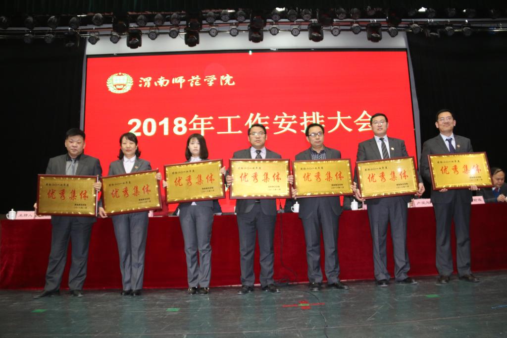 会上,副院长程书强、李海龙、权雅宁、卢爱刚分别安排了各自的分管工作。纪委书记肖耀刚宣读荣获2017年度考核优秀集体、优秀个人、先进集体和先进个人的集体与个人名单,学校领导向受表彰的集体和个人颁发了奖牌和证书。
