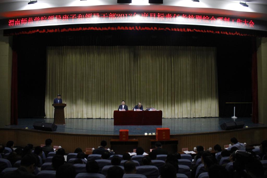 丁德科首先代表学校领导班子作2017年工作述职报告。紧接着,学校领导班子成员依次进行述职。最后,考核组工作人员组织与会人员认真填写了《高校领导班子年度目标责任考核民主测评表》、《高校领导人员目标责任考核民主测评表》、《人才工作年度目标责任制考核民主评议表》、《干部选拔任用工作民主评议表》、《干部任职试用期满考核测评表》等。