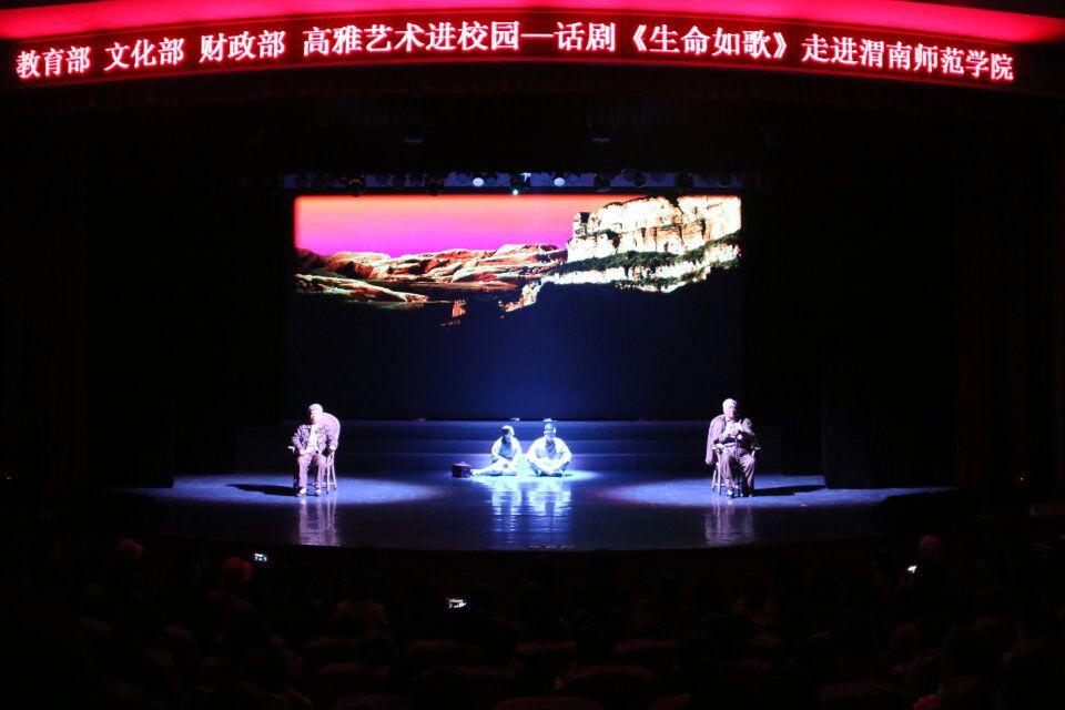 为贯彻习近平新时代中国特色社会主义思想和十九大精神,落实立德树人根本任务,提高学生艺术修养和文化素质,4月14日晚,由教育部、文化部、财政部联合主办的“高雅艺术进校园”活动——山西省话剧院《生命如歌》在威尼斯陶然楼演艺厅举办。山西话剧院副院长曹若瑜,威尼斯党委副书记任健,副院长李海龙,党委委员、校长助理韩小卫,党委委员、组织部部长凌朝栋,相关部门、部分二级学院领导及五百余名学生代表观看演出,由团委副书记姚明亮主持活动。