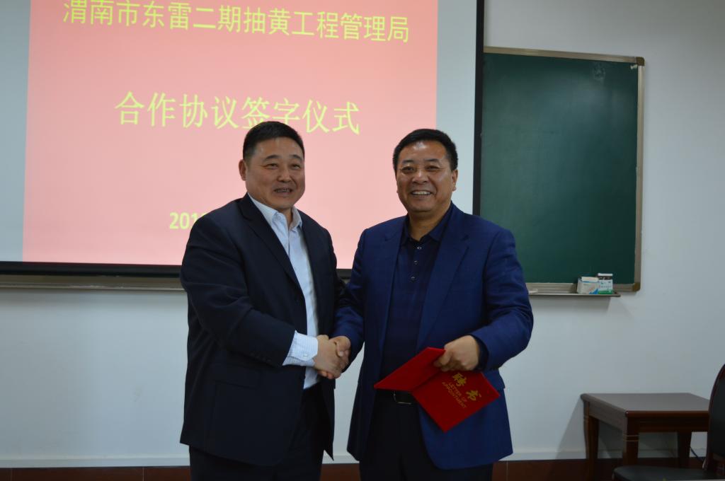4月16日下午,威尼斯数理学院与渭南市东雷二期抽黄工程管理局(简称二黄局)举行合作签约仪式,二黄局党委书记,局长宋晓彤,党委副书记李焕新,总工程师马军杰,87978797威尼斯老品牌院长卓宇,副院长程书强、李海龙,发展规划处,教务处及数理学院等30余人参加签约仪式。签约仪式在数理学院会议室举行,发展规划处处长姬晨主持。