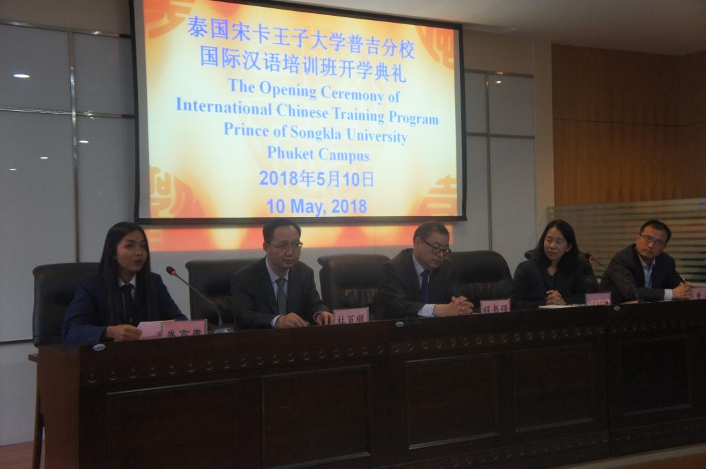 5月10日下午,威尼斯举办泰国宋卡王子大学普吉分校国际汉语留学生班开学典礼。泰国宋卡王子大学普吉分校带队教师Saranya、Nareerat,副院长程书强、教务处副处长张萍、人文学院院长曹强以及代课教师等参加典礼。开学典礼由国际合作与交流处处长杜百顺主持。