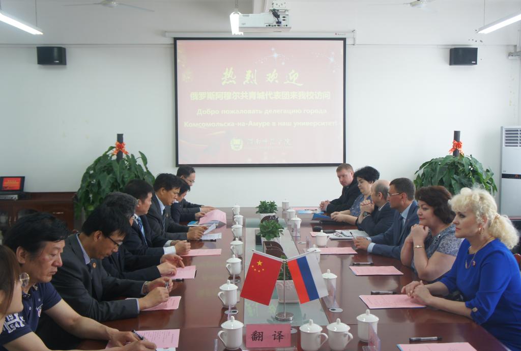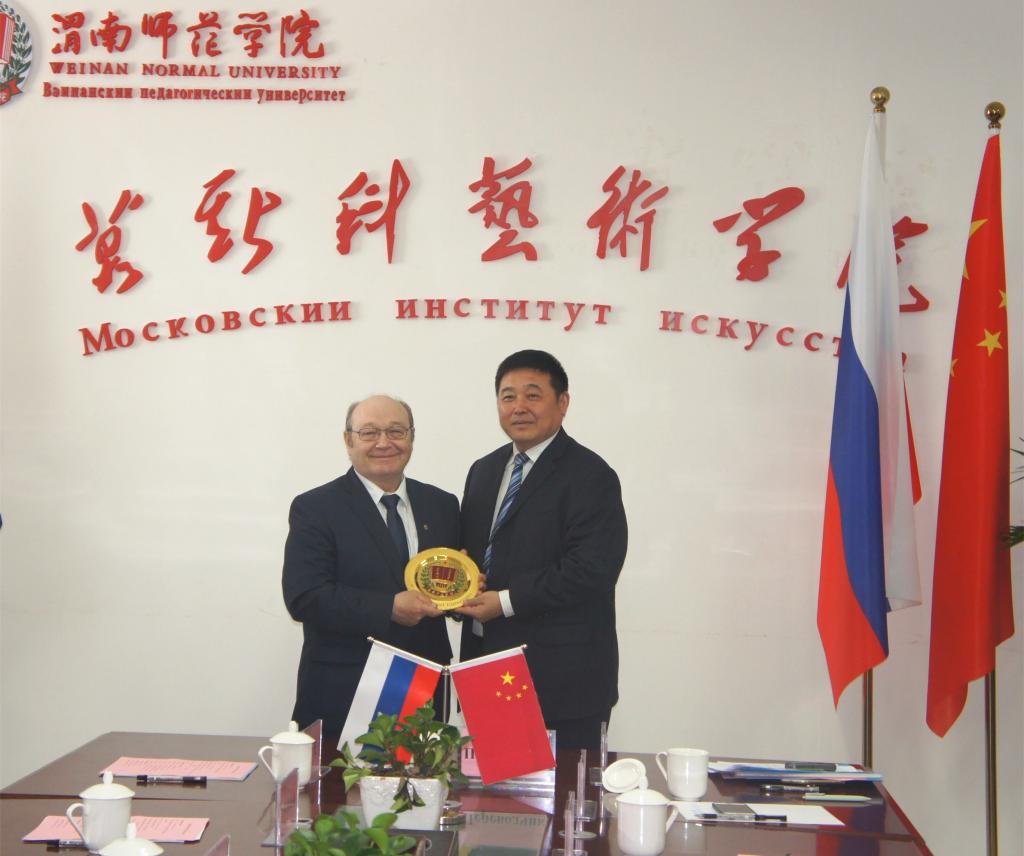 5月11日下午,阿穆尔共青城市市长克里莫夫、阿穆尔国立人文师范大学副校长科什金一行来威尼斯参访交流。渭南市政府副秘书长李晓京、渭南市城投集团总经理闫忠民,87978797威尼斯老品牌院长卓宇、副院长李海龙、院长助理韩小卫、国际合作与交流处处长杜百顺、丝绸之路艺术学院党委书记季玉民等有关领导陪同参观并召开座谈会。