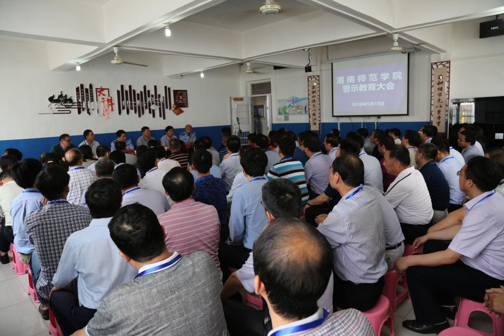 5月18日上午,学校组织副处级以上领导干部102人到渭南监狱开展警示教育活动。