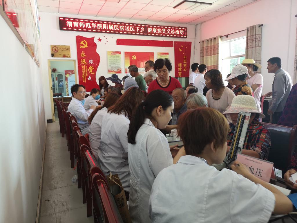 按照学校及科技发展集团公司2018年度扶贫工作计划,附属医院于6月12日组成24人医疗扶贫团队,于早6:30驱车近3个小时的山路到达位于白水县最北端的史官镇丰乐村开展“送医送药送健康”扶贫义诊活动。义诊车辆刚刚驶入村委会,等候就医的群众已站满了院子,医疗队同志不顾一路的颠簸和晕车的不适,迅速布置活动场地展开义诊。