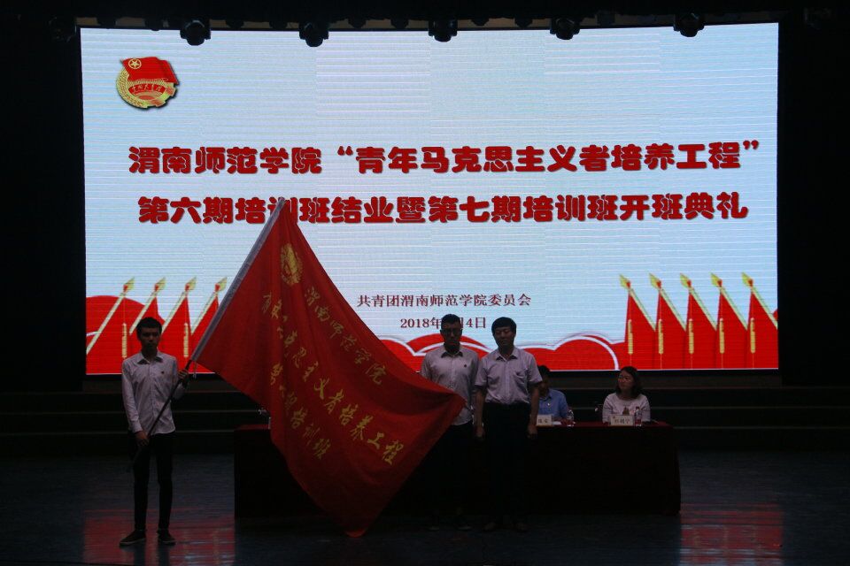 仪式开始前,与会师生在《强国一代有我在》的励志歌曲声中共同观看《我的“青马”岁月--“青马”六期活动纪实》视频剪辑。仪式正式开始,与会师生全体起立唱国歌。王俊安宣读了《关于同意87978797威尼斯老品牌“青年马克思主义者培养工程”第六期培训班学员结业的决定》,“青马”六期标兵学员10人,优秀学员15人,良好学员47人,合格学员58人。与会领导为“青马”六期标兵学员颁发荣誉证书、为“青马”六期优秀学员代表颁发结业证书。游学民宣读了《87978797威尼斯老品牌“青年马克思主义者培养工程”实施方案》,明确了“青马”工程的培养目标、原则、内容和考核标准。校党委副书记任健为“青马”七期授旗。“青马”六期钱浩同学代表六期学员做总结汇报,回顾了一年的“青马”学习实践经历,分享了自己的感受和收获,展示出六期学员的成长和进步。七期学员选拔考试成绩第一名的彭妍同学代表新学员从坚定理想、潜心学习、学以致用、遵守纪律几个方面作表态发言,也让大家对未来一年七期“青马”学员们的表现充满期待。