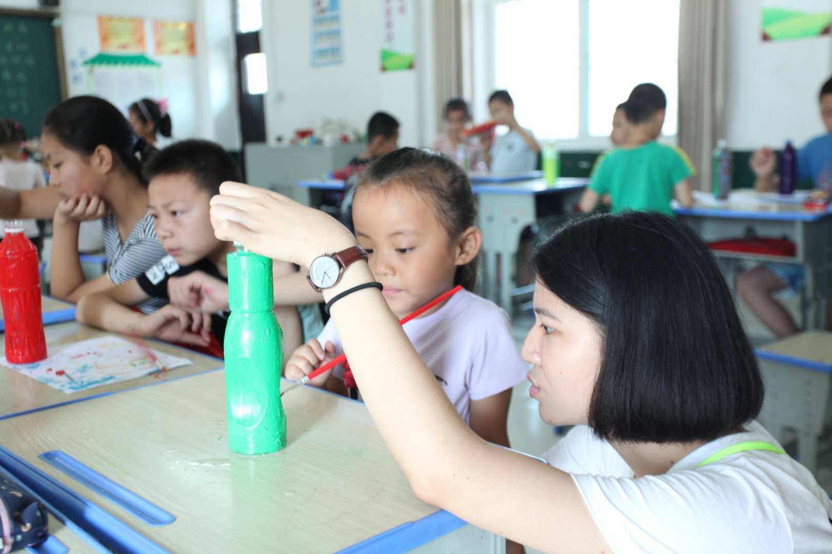 每天支教中实践成员从家长手里接到孩子,放学后再亲手交给家长,同时,他们又根据具体的情况为每一个报名的孩子进行分班。“看到支教两岸两校大学生老师们服务做的很到位,我感觉很欣慰。”仓颉学区李耀强主任说。