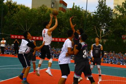 张晓民为师生篮球友谊赛开球,拉开比赛的序幕。