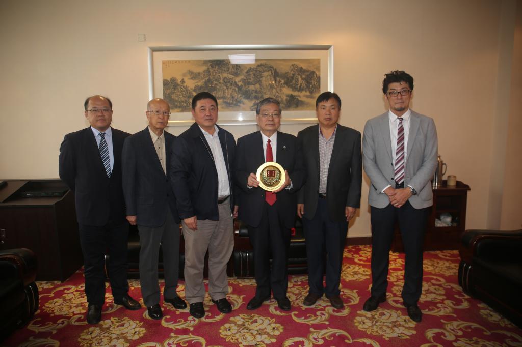 院长卓宇与理事长上野八郎互赠礼品并合影留念