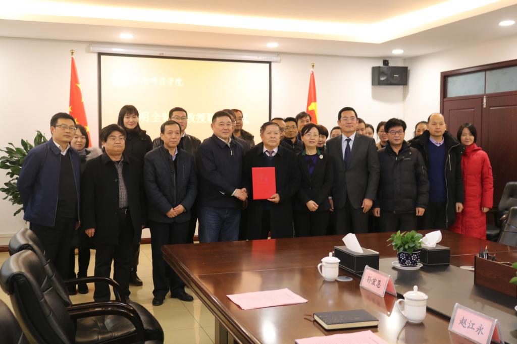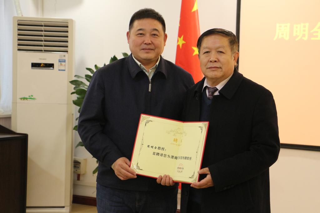 聘任仪式上,卓宇院长为周明全教授颁发聘书,正式聘请周教授为学院的特聘教授,参会人员一起合影留念。随后,周明全教授讲了自己关于文物虚拟修复及数字化保护的一些做法及今后设想,网信学院院长刘军、传媒学院院长曹熙斌也分别作了发言。