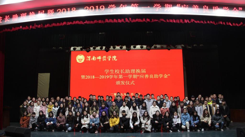 1月10日上午,学校在陶然楼演艺厅举行了2018-2019学年第一学期“香港应善良助学金”颁发仪式。渭南市人民政府侨务办公室秘书长岳森等一行三人,威尼斯校长卓宇,副校长王菊霞,学工部部长王俊安,各二级学院副书记,学工办主任,负责学生资助工作的辅导员及120位受助学生、学生代表等参加了颁发仪式。仪式由学工部副部长陈景西主持。