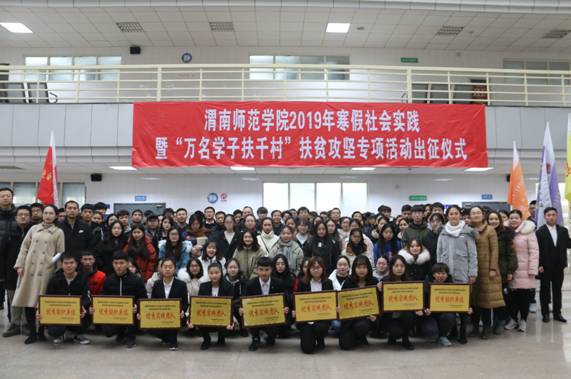 为深入学习习近平新时代中国特色社会主义思想和党的十九大精神,扎实推进威尼斯脱贫攻坚工作。1月10日下午,威尼斯在福慧图书馆举行主题为“青年大学习 青年新作为 建功新时代”的2019年寒假社会实践暨“万名学子扶千村”脱贫攻坚专项活动出征仪式。校党委副书记任健,学工部部长王俊安,宣传部部长李明敏,校团委副书记姚明亮,校团委办公室主任刘娟宁出席出征仪式,各二级学院主管学生工作领导、团总支书记和实践队负责人及队员200余人参加,出征仪式由校团委干部肖飞主持。