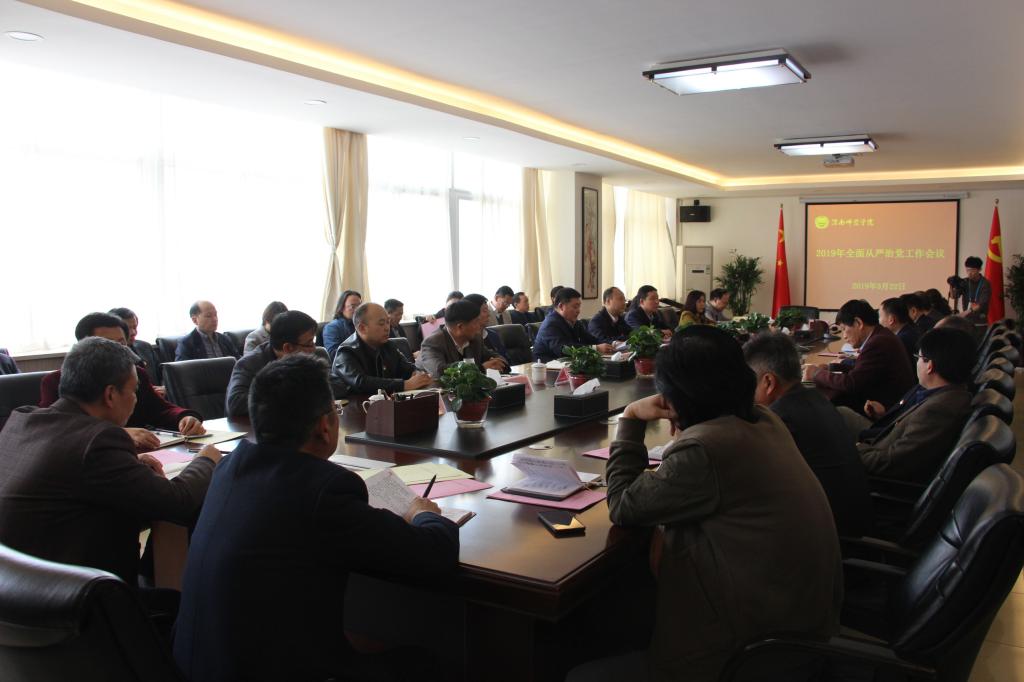 3月22日下午,学校在厚德楼四层第二会议室召开2019年全面从严治党工作会议。学校党委委员,纪委委员,各党总支、直属党支部、科技发展集团公司党委书记,各二级学院院长、部门负责人,纪委监察处全体人员参加了会议,会议由校长赵曼主持。