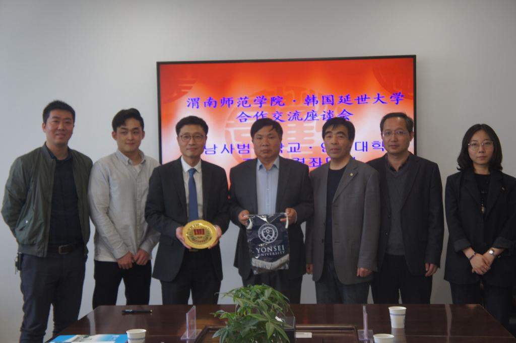 4月9日下午,韩国延世大学原州校区国际交流学院院长朴正晧一行五人来威尼斯访问交流,并在厚德楼四楼第一会议室召开合作交流座谈会。 副校长李海龙、国际合作与交流处处长杜百顺、外国语学院院长雷来富出席座谈会。