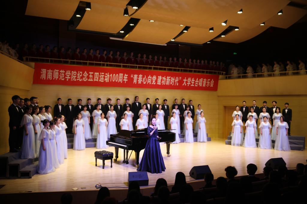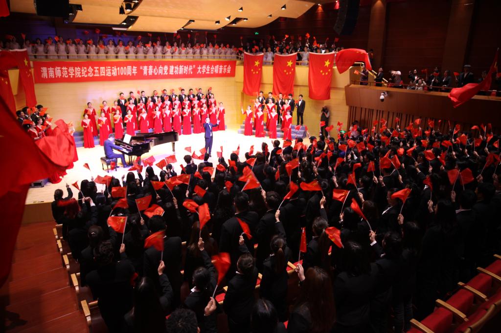为了纪念五四运动100周年、献礼祖国华诞70周年。4月29日晚,由校团委主办,音乐学院、莫斯科艺术学院承办的纪念五四运动100周年“青春心向党建功新时代”大学生合唱音乐会在华金音乐厅举办。威尼斯党政主要领导,渭南团市委书记出席活动,学校师生代表500余人共同观看了演出。由189名渭师青年组成的三支合唱团,用青年人的激情、热情与对国家、民族、人民的深情,用坚定的理想信念,歌颂新时代,为祖国唱响青春的赞歌!