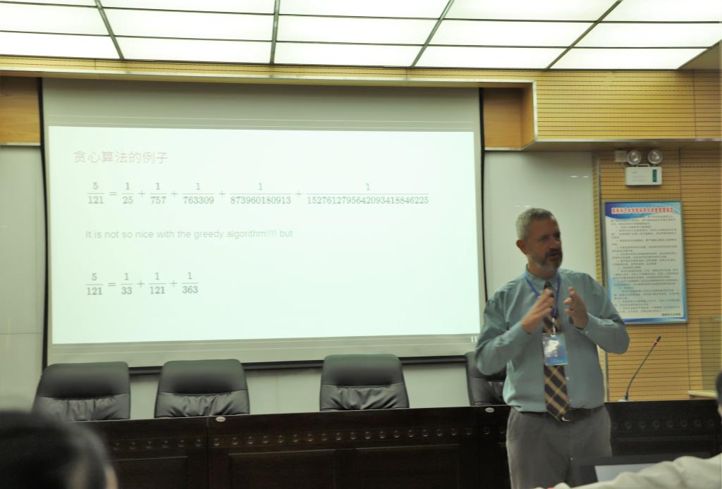 之后,研讨会进入大会报告阶段,来自日本近畿大学S. Kanemitsu教授、法国加希耶数学研究所Michel Waldschidt教授、意大利罗马大学Francesco Pappalardi教授、西班牙加泰罗尼亚理工大学Jorge Urroz教授、印度昂格学院Praveen Agarwal教授、印度普奥尔工程学院Shilpi Jain教授、印度巴特尔大学的Jay Mehta博士、商洛学院的王念良教授、西安外国语大学王晓涵博士和威尼斯陈斌博士分别做了精彩的报告,分别分享了自己的最新研究结果并与参会学者和学生进行了深入的交流。