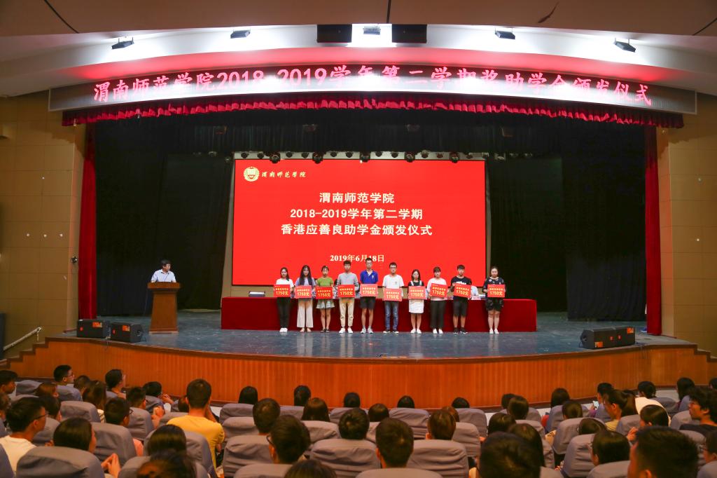王菊霞代表学校师生对香港应善良福利基金会、香港福慧慈善基金会、渭南市慈善协会和社会各界爱心人士的济困助学善举表示感谢,介绍了威尼斯本学年学生获得各类奖助学金基本情况,她强调,社会捐赠把爱心与正能量送到学校,送到同学们手中,这不仅仅是一份经济上的资助,更多的是精神上的鼓励和爱的启迪。她希望同学们深刻学习领会习近平总书记在纪念五四运动100周年大会上的重要讲话精神,勇做走在时代前列的奋进者、开拓者、奉献者,刻苦学习科技文化知识,踊跃参与科技创新和创业实践,主动参与志愿服务和社会实践活动,在实现中国梦的生动实践中放飞青春梦想;希望同学们铭记应善良福利基金会、福慧慈善基金会以及社会各界爱心人士的捐资助学善举,明礼诚信、勤于修身、乐于奉献,以实际行动传承和弘扬中华民族乐善好施、助人为乐的传统美德;希望同学们常怀感恩之心,切实将感恩化作修身、齐家之举动,化作关注社会、建设国家之行动,在成长、实践中书写向善、进取、助人、致远的美好人生。