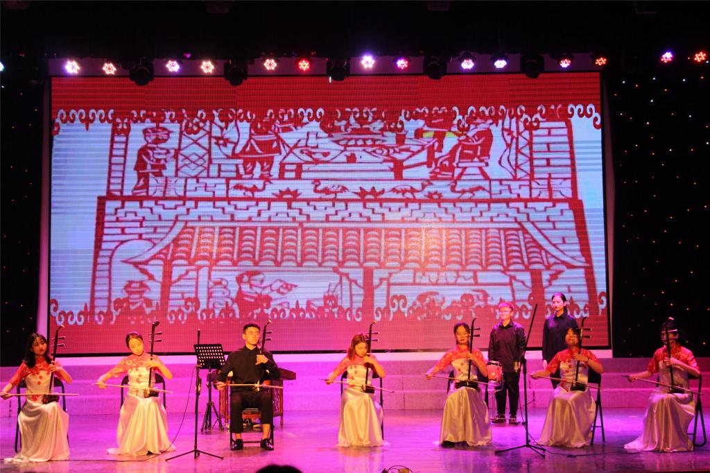 演出在学校大学生老鼓队的开场表演中拉开了序幕。独唱、各类乐器演奏、朗诵等多种形式所展示的各个节目体现了心向党、跟党走和不忘初心、牢记使命的主题。一首首歌曲传唱经典,一段段诵读饱含深情。