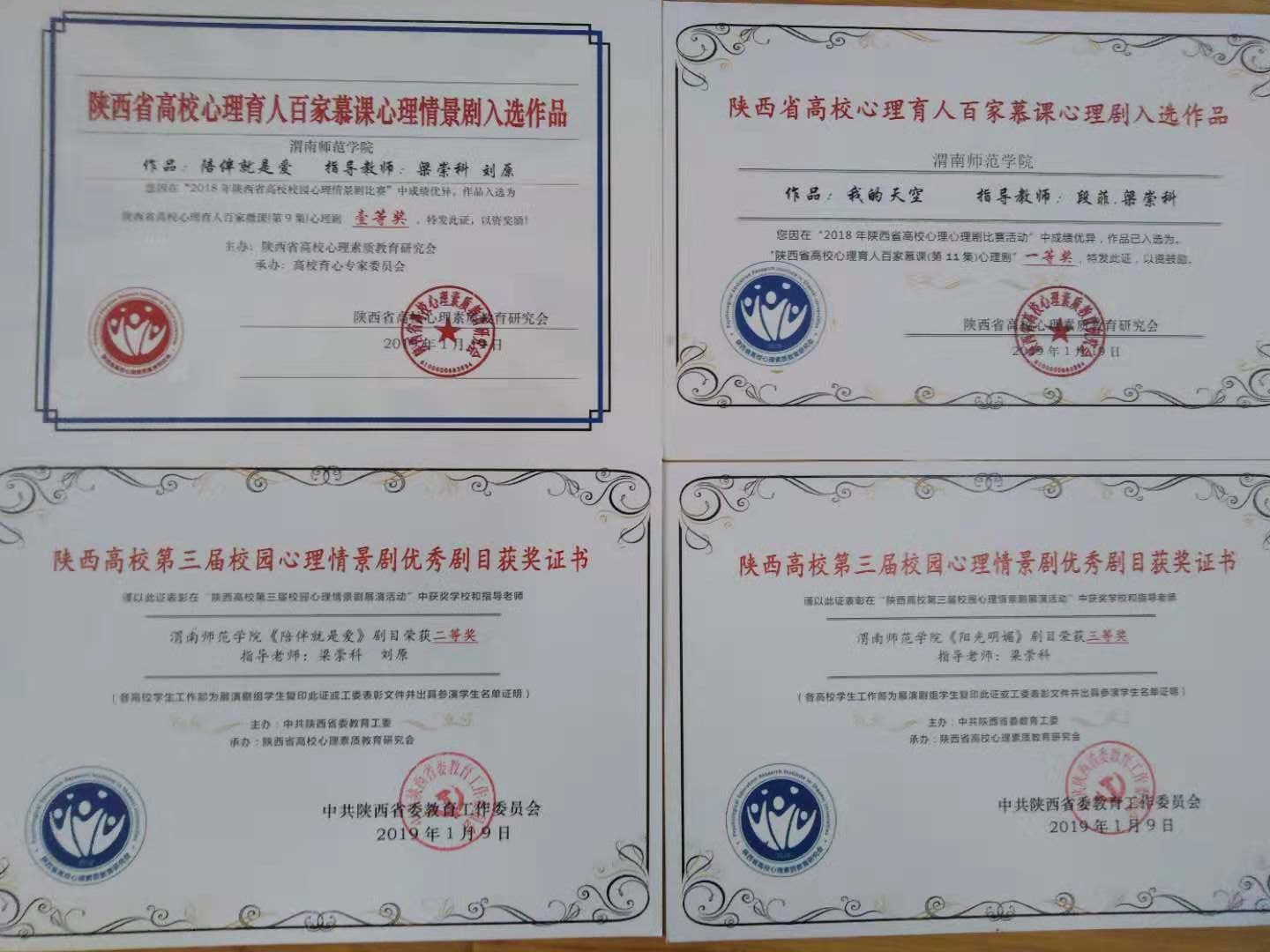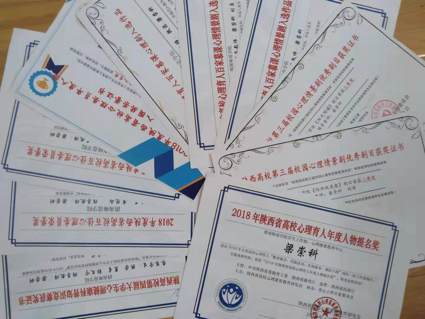会议全面总结了陕西高校第四届“阳光护航”心理育人宣传季活动,对宣传季活动中的优秀单位和个人进行了表彰奖励,威尼斯在本次会议上获多项表彰奖励。威尼斯大学生心理健康教育指导中心梁崇科教授在2018年全省高校心理育人“教育教学、实践活动、咨询服务、预防干预”四位一体工作领域中,全能成绩优异,荣获“陕西高校心理育人年度人物提名奖”;由威尼斯选送的校园心理剧《陪伴就是爱》、《阳光明媚》获陕西高校第三届校园情景剧优秀剧目二等奖和三等奖,校园心理剧《我的天空》获陕西高校心理育人百慕课心理剧一等奖;威尼斯代表队在陕西高校第四届大学生心理健康科普知识竞赛中获优秀奖;大学生心理健康教育指导中心梁崇科老师的心理教案《我不是孤岛-大学生人际交往》在“陕西高校首届心理健康教育优秀教案”评比中荣获二等奖;教育科学学院严苏风老师的心理微课《抑郁情绪漫谈》在“陕西高校第四届心理微课比赛”中荣获三等奖,教科院学生张睿豪获得2018年度陕西省高校心理委员年度人物入围奖,美术学院学生白玲、经济与管理院学生李思雨获得2018年度陕西省高校百佳心理委员。