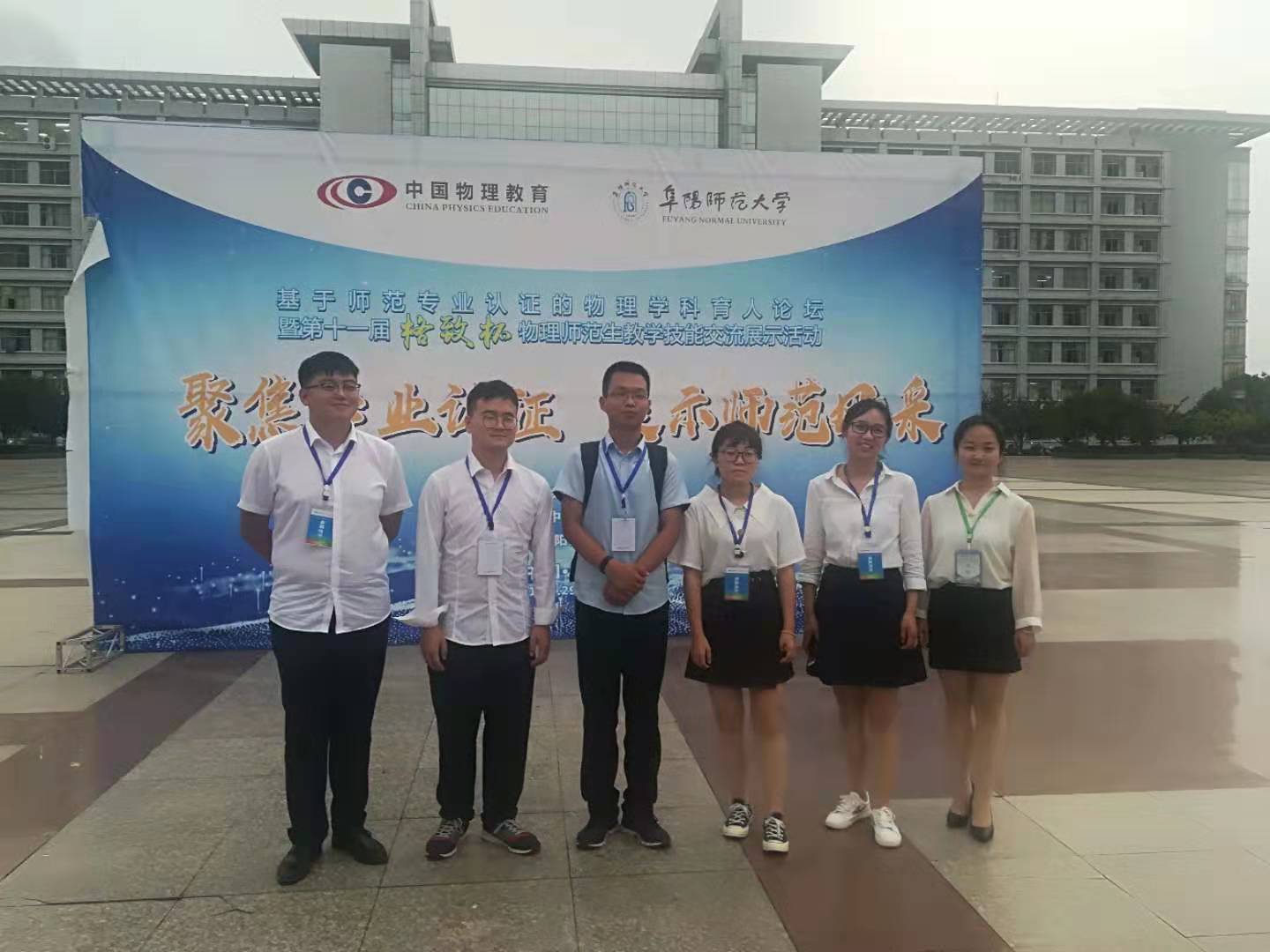 2019年7月29日—31日,由中国教育学会物理教学专业委员会、《物理教师》编辑部、《中学物理》编辑部联合主办的基于师范专业认证的物理学科论坛暨第十一届“格致杯”物理师范生教学技能展示活动在阜阳师范大学举行。本次交流会旨在于师范专业认证背景下培养和提高将于2020年毕业的硕、本学生的物理教学技能、自制教具与设计实验等方面的核心能力素养。指导老师白秀英、郭宝会带领威尼斯选手参赛。