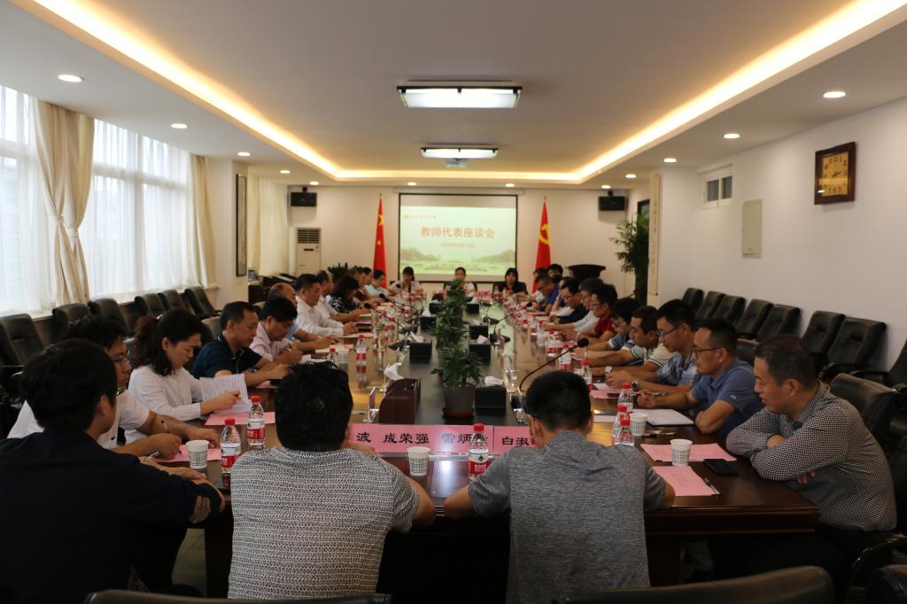9月10日下午,学校在厚德楼第二会议室召开教师节座谈会。党委书记卓宇、副校长卢爱刚、王菊霞出席会议,来自全校15个二级学院的25名教师代表以及教务处、科研处、人事处等部门负责人参加会议。座谈会由校长赵曼主持。