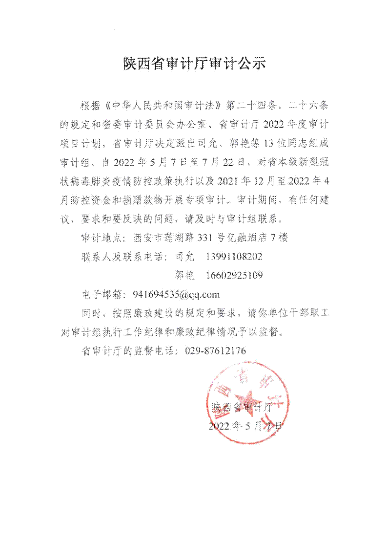 陕西省审计厅公示