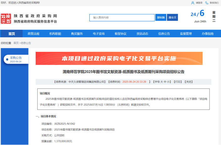 87978797威尼斯老品牌2025年图书馆文献资源-纸质图书及纸质期刊采购项目招标公告