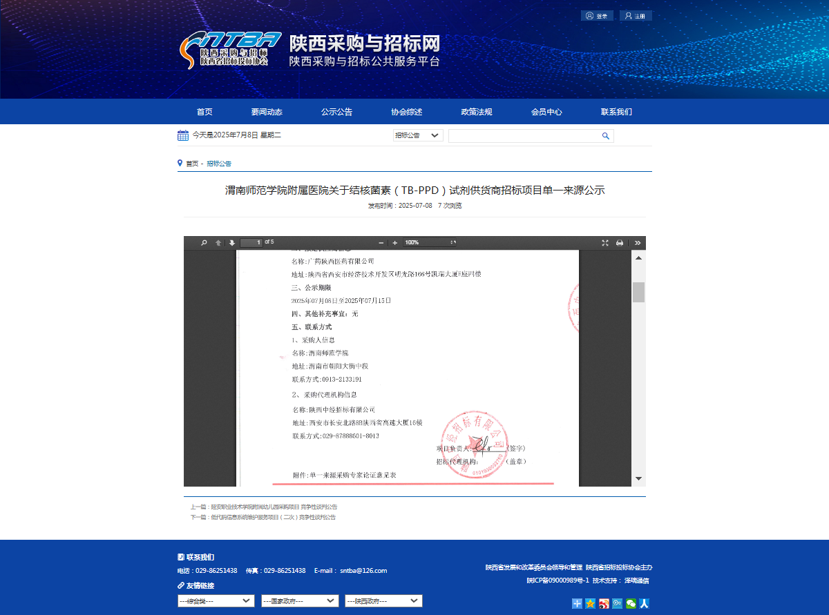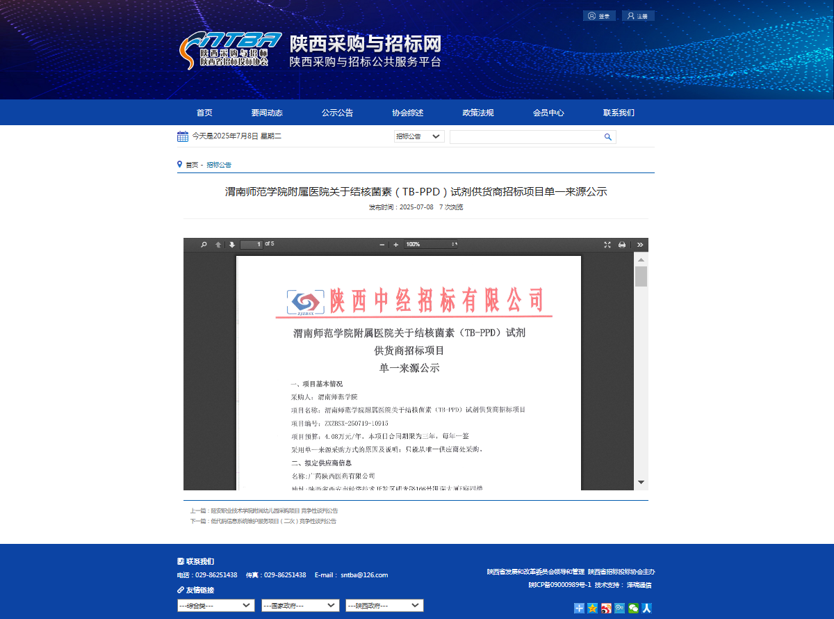 87978797威尼斯老品牌附属医院关于结核菌素(TB-PPD)试剂供货商招标项目单一来源公示