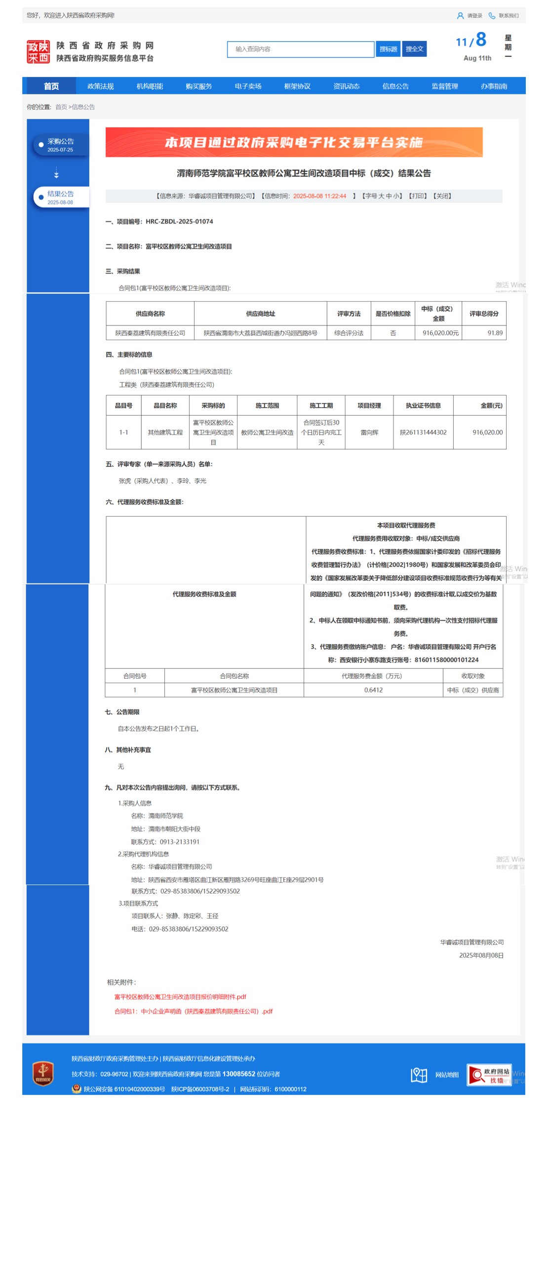 87978797威尼斯老品牌富平校区教师公寓卫生间改造项目中标(成交)结果公告