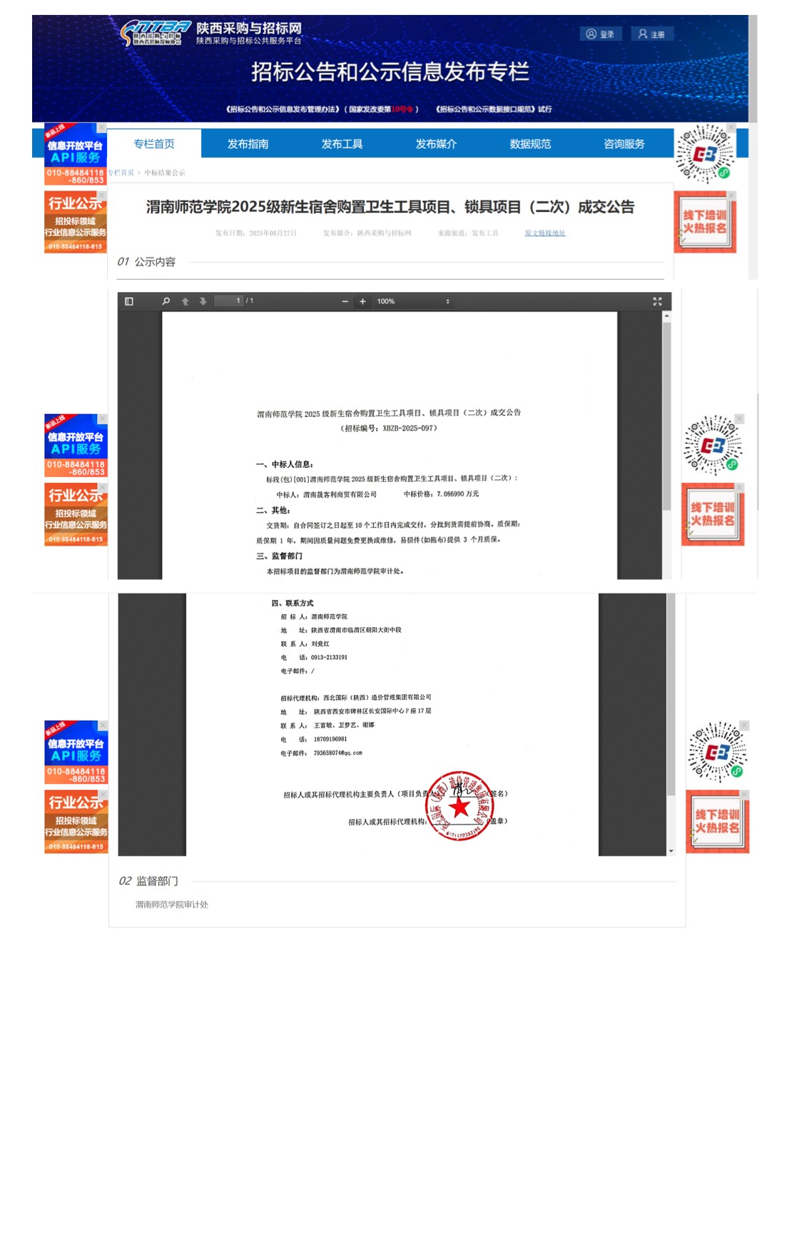 87978797威尼斯老品牌计算机综合实验教学中心更新改造项目装饰工程中标(成交)结果公告