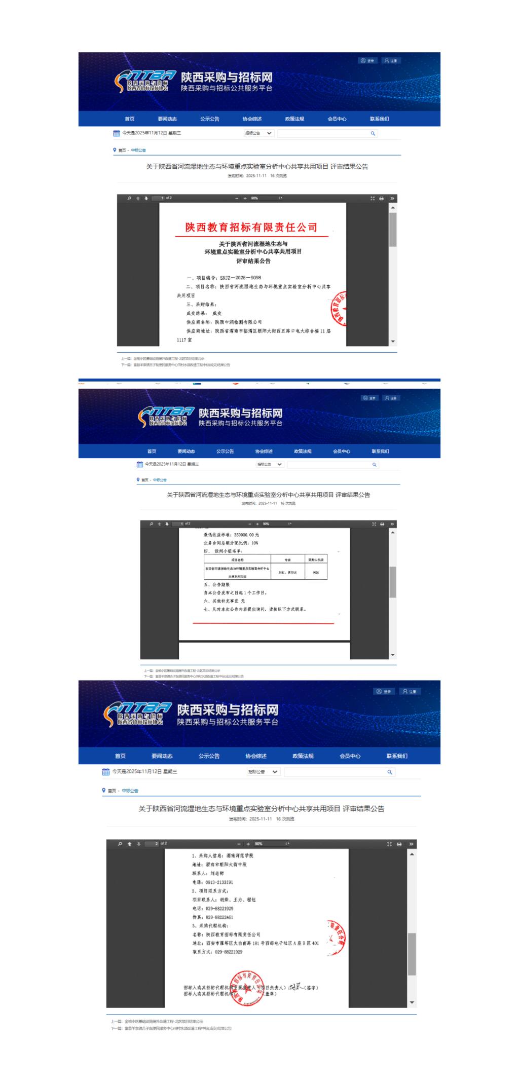 关于陕西省河流湿地生态与环境重点实验室分析中心共享共用项目评审结果公告