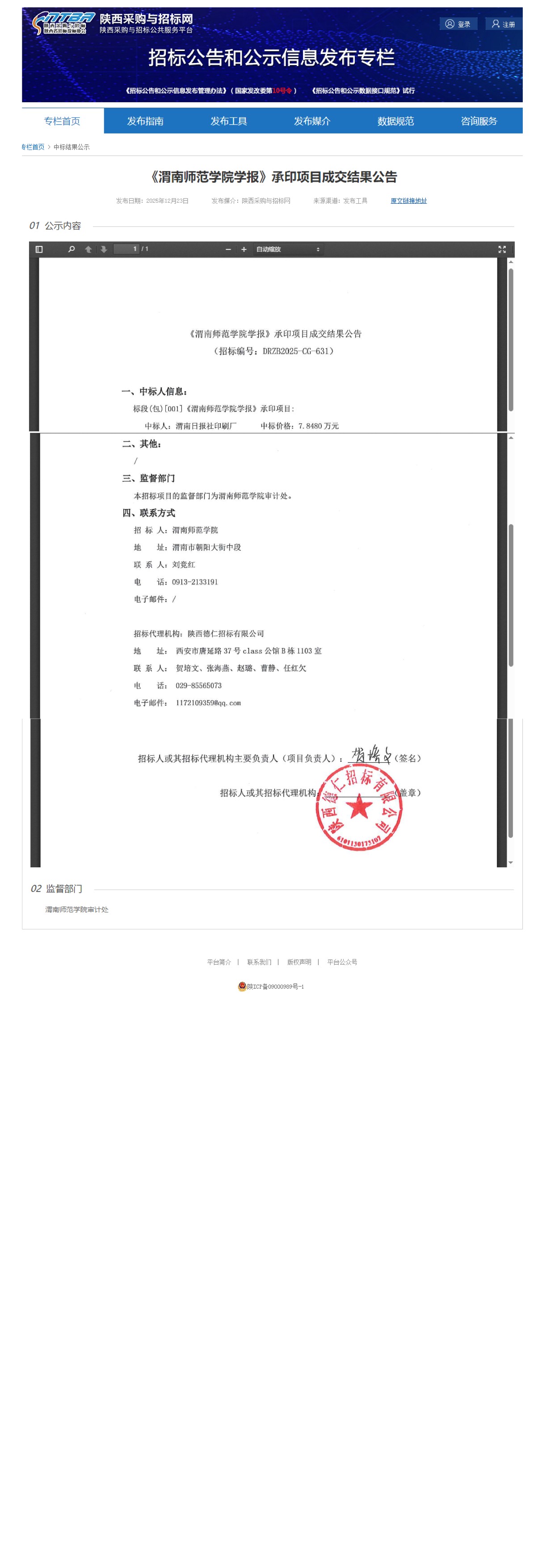 《87978797威尼斯老品牌学报》承印项目成交结果公告