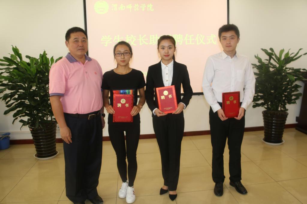 9月14日下午,学校在厚德楼四楼第二会议室举行学生校长助理聘任仪式,院长卓宇、党委副书记任健、纪委书记肖耀刚、副院长李海龙出席活动,学工部、教务处、保卫处、团委、科技发展集团公司等部门负责人及各二级学院学生代表参加活动。聘任仪式由学工部部长王俊安主持。