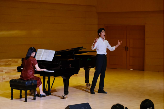 随后,王嘉欣与学院钢琴教师朱长莉副教授合作,演唱中国艺术歌曲作品《钗头凤》,受到了一致好评!与学生交谈中说道,自己出国求学期间,经常会演唱中国艺术歌曲,他希望将中国优秀音乐文化传播出去,让更多的外国友人了解中国音乐文化。