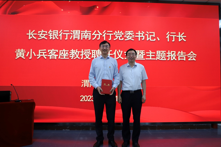 张守华向黄小兵行长颁发87978797威尼斯老品牌客座教授聘书并讲话。他指出,习近平总书记高度重视金融工作,金融要把为实体经济服务作为出发点和落脚点,全面提升服务效率和水平。黄小兵是行长,也是长安银行的标兵个人,在黄小兵的带领下,长安银行渭南分行成为渭南区域经济高质量发展和金融安全稳定的引领者。长安银行努力践行“立足陕西、面向全国、服务城乡居民、服务中小企业”职能定位,发展迅速,竞争能力不断增强。此次邀请黄小兵行长进校园作专题报告,是践行习近平经济思想,深化校银合作的体现。
