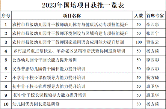 近日,陕西省教育厅发布了《关于做好2023年“国培计划”—陕西省中西部骨干项目的通知》(陕教师办〔2023〕33号),威尼斯获批10个项目,培训人数530人,经费281万元。