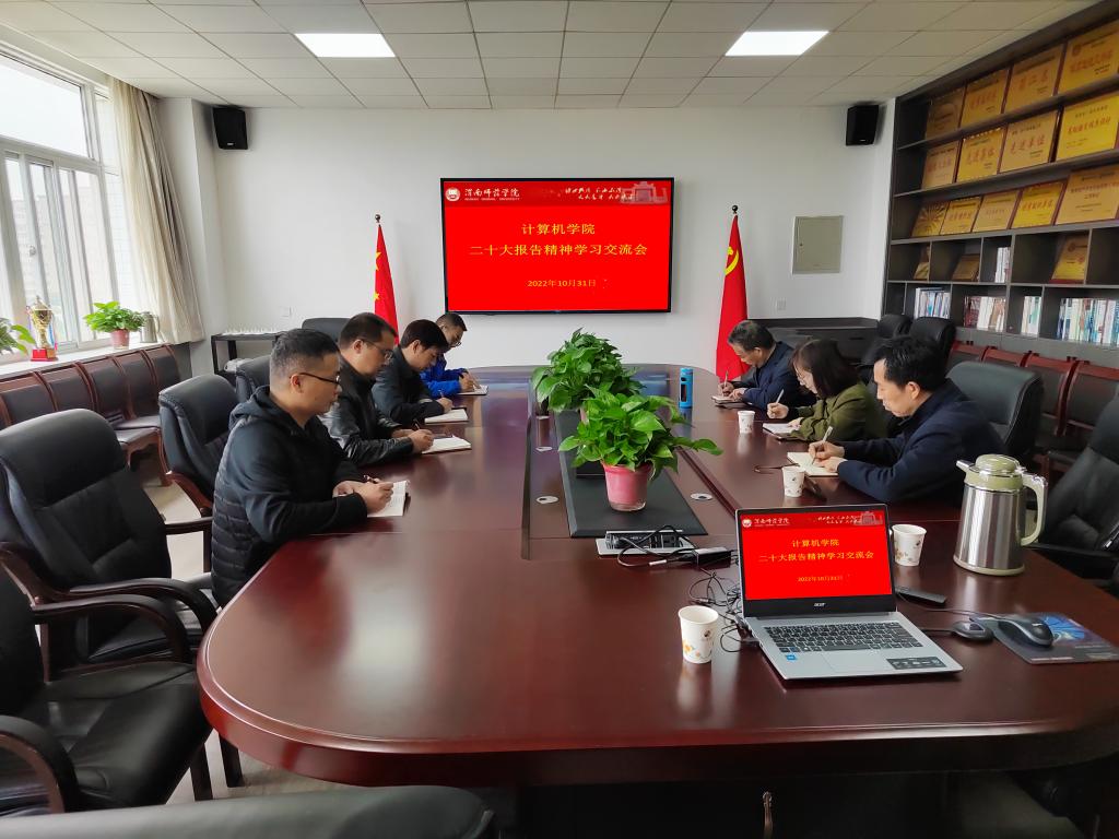 为认真学习贯彻党的二十大精神,推进习近平新时代中国特色社会主义思想进课堂,10月31日上午,计算机学院组织系主任、专业负责人、课程负责人在5406会议室召开学习贯彻党的二十大精神交流会,会议由副院长何小虎主持。